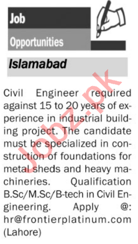 Civil Engineer & Electrical Engineer Jobs 2021 In Islamabad