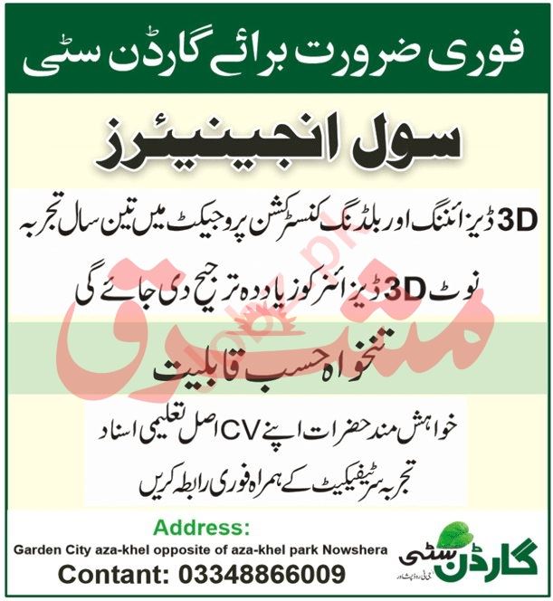 Housing Society Nowshera, nowshera Khyber Pakhtunkhwa KPK Pakistan invites applications from eligible candidates for the post of civil engineer as per advertisement of December 26, 2023 published in daily Mashriq Newspaper. Persons with B.E and Bachelor etc. education can apply.