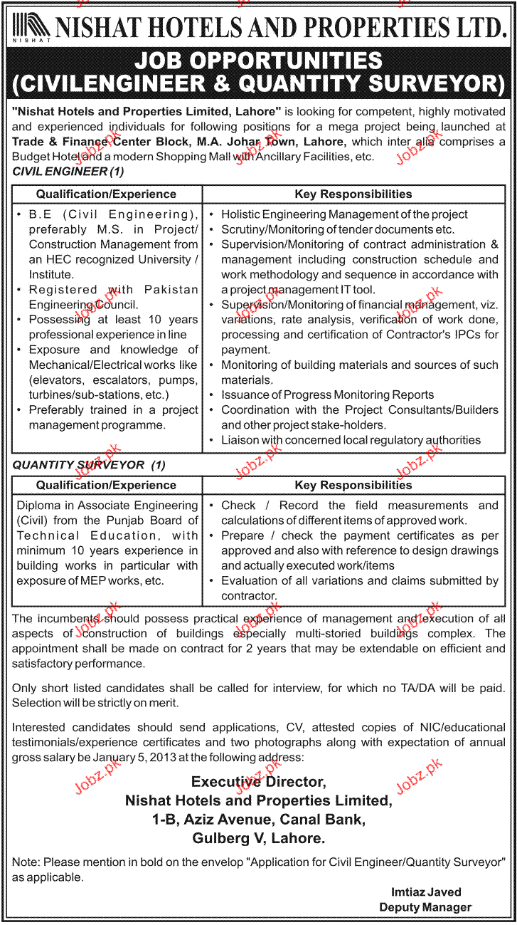 Apply as per details in job advertisement. Login to view further details of how to apply via https://www.jobz.pk online.