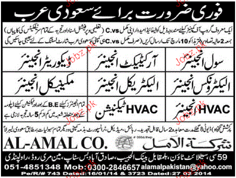 Civil Engineers, Architect Engineer, HVAC Technicians wanted