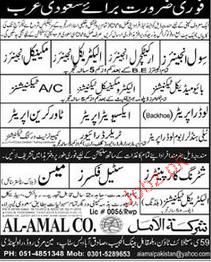 Civil Engineers, Electrical Engineers, Electro Mechanical Technicians, Loader Operators, AC Technicians and Shuttering Carpenters are required in Saudi Arabia