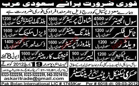 Civil Engineers, Finishing Carpenters, Welders Wanted