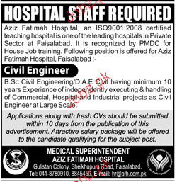 Latest Aziz Fatimah Hospital Engineering Posts Faisalabad 2025