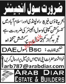 Civil Engineers are required in Arab Diar Estate & Builders in Islamabad