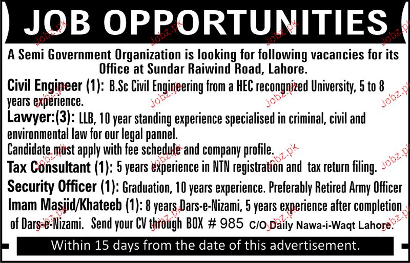 Apply as per details in job advertisement. Login to view further details of how to apply via https://www.jobz.pk online.