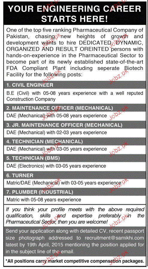 Apply as per details in job advertisement. Login to view further details of how to apply via https://www.jobz.pk online.