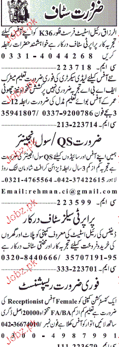 Civil Engineers, Salesman, Receptionist Job Opportunity