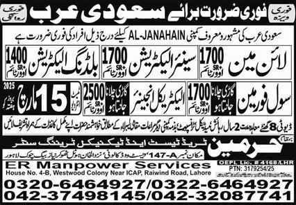 Harmain Trade Test & Technical Training Center is looking for candidates for following posts as per job advertisement published in daily Express Newspaper of March 15, 2025 for location Riyadh, taif Saudi Arabia: