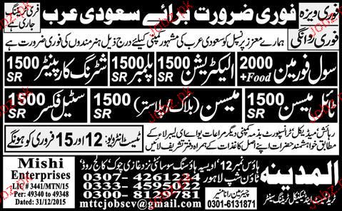 Civil Foreman, Electricians, Shuttering Carpenters Wanted