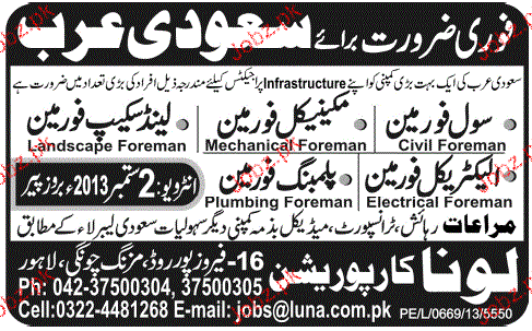 Civil Foreman, Mechanical Foreman Job Opportunity