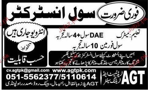 Civil Instructors are required in AGT Trade Test and Training Center in Rawalpindi