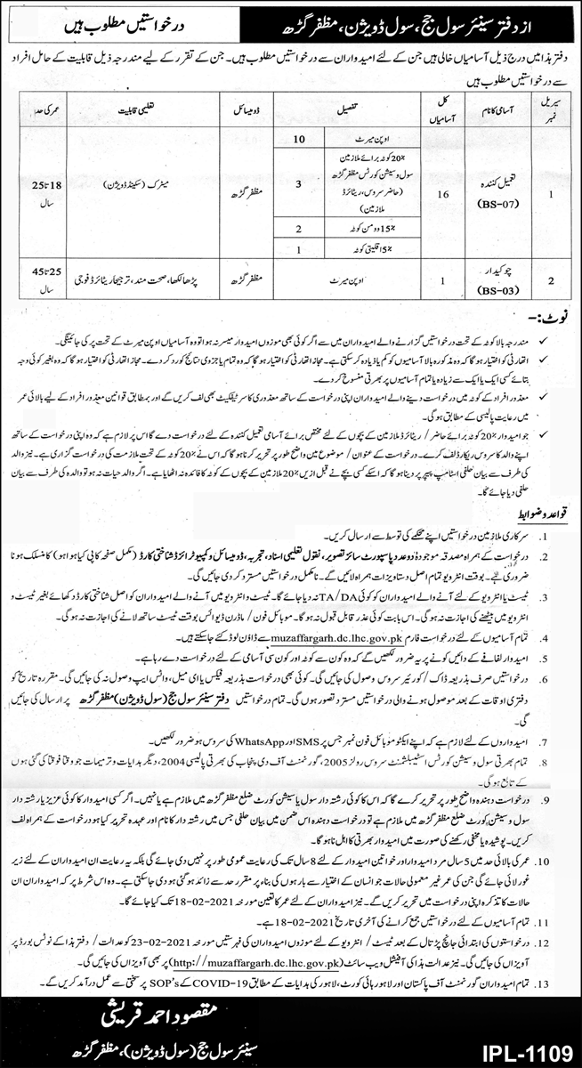 Latest Senior Civil Judge Office Management Posts Muzaffargarh 2025
