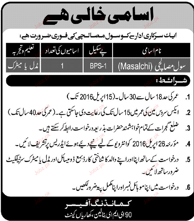 Apply as per details in job advertisement. Login to view further details of how to apply via https://www.jobz.pk online.