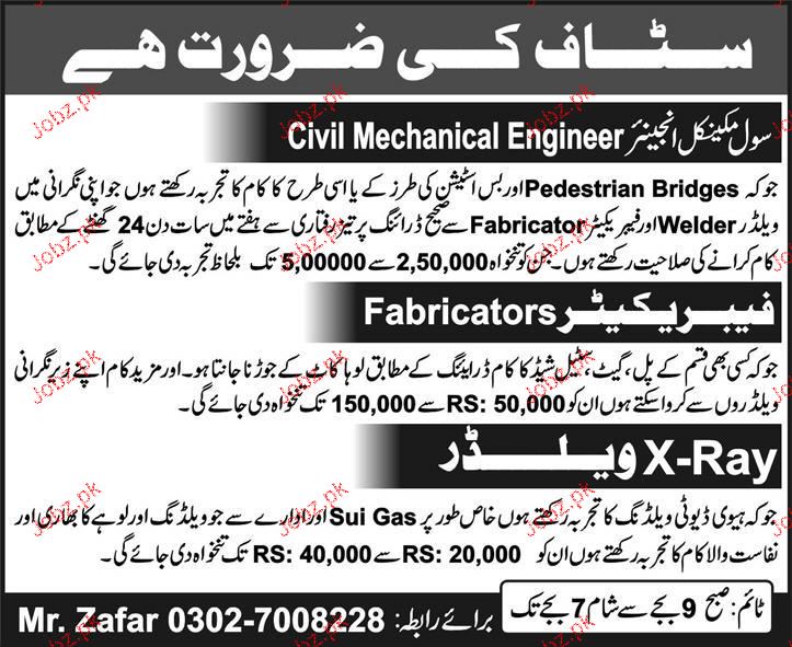 Civil Mechanical Engineers, Fabricators Job Opportunity