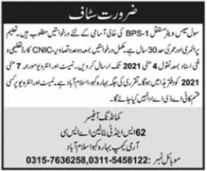 Civil Mess Waiter Job 2021 in Islamabad