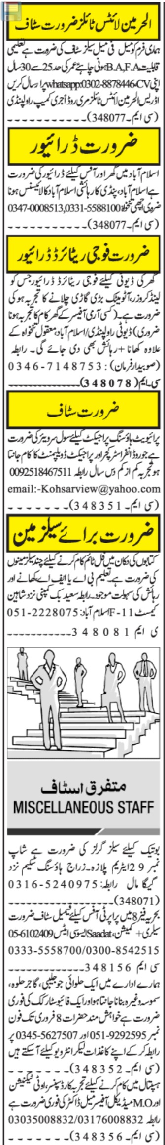 Private Company jobs advertisement dated about 1 February 2022 in daily Jang Newspaper invites application for the vacant post of htv driver, medical officer, driver, ot technician, chef, civil surveyor, cook, dispenser, sales officer, salesgirl, salesman, ltv driver and sales staff in Islamabad Pakistan. Candidates with MBBS, Others, Middle, Matric, Intermediate and Bachelor etc. educational background will be preferred.