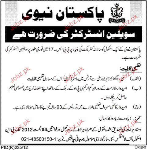 Latest Pakistan Navy Teaching Posts Karachi 2025