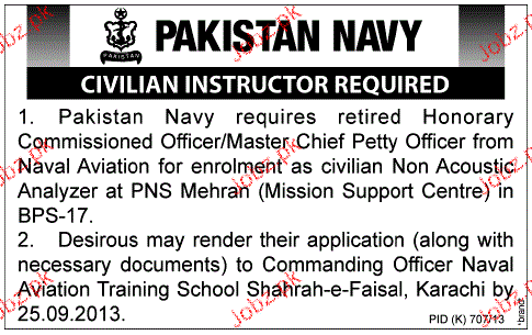 Civilian Instructors Job In Pakistan Navy