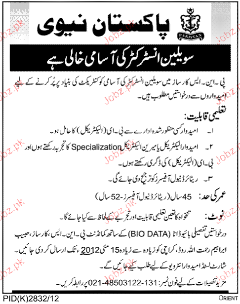 Latest Pakistan Navy Teaching Posts Karachi 2025