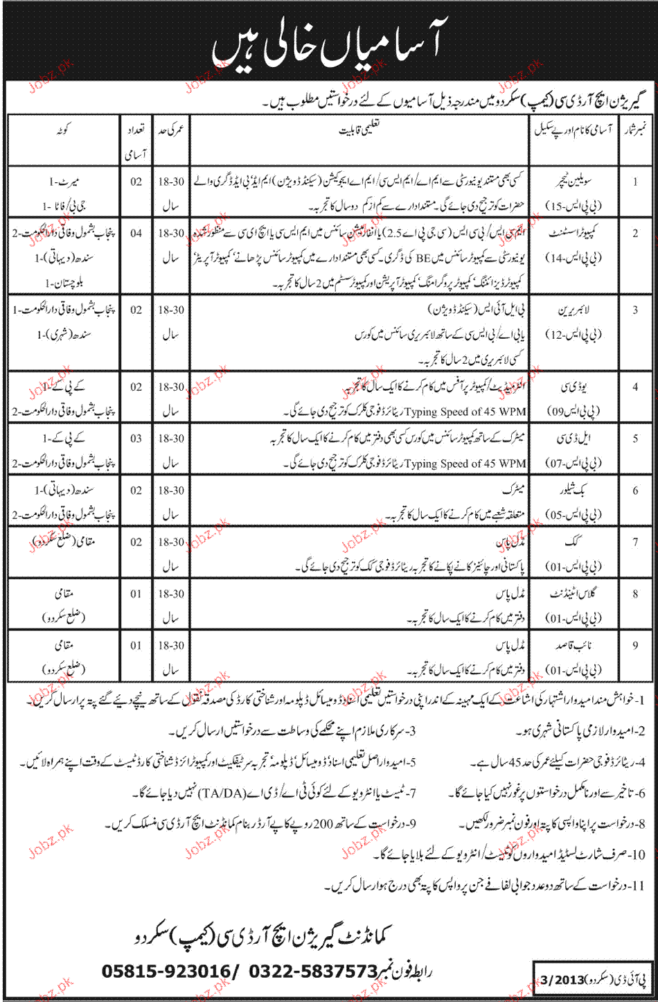 Latest Pakistan Army Teaching Posts Skardu 2025