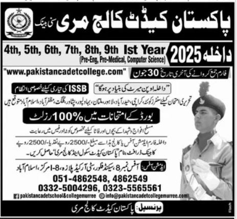 Class 4th to 11th Admissions open in Pakistan Cadet College