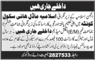 Islamia Model High School has announced admissions 2023 for Class 6th to 9th. Students can enroll for admissions in Islamia Model High School Quetta Balochistan Pakistan for academic year 2023 to continue campus based or online education in Science School. Students for admissions in Matric and Middle & criteria can apply as per Private institute admission policy 2023 before closing date April 12, 2023 as per advertisement. Read newspaper ad for exact details.