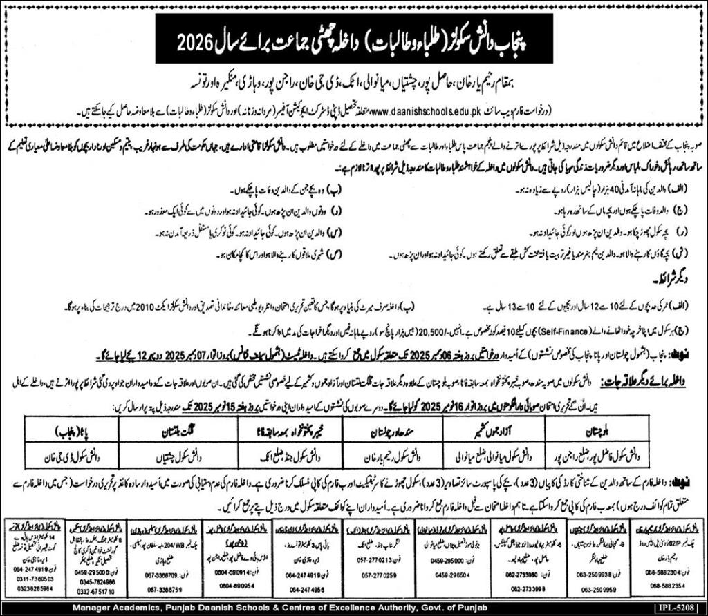 Danish College of Special Education Class 8th admissions 2025 has been announced. Eligible students who qualify as per admission criteria in Danish College of Special Education Lahore Punjab Pakistan can apply in Science School for academic year 2025. Eligible students for fulfilling criteria for admissions in can enroll as per Government admission policy 2025 till closing date. Read newspaper ad for exact details.