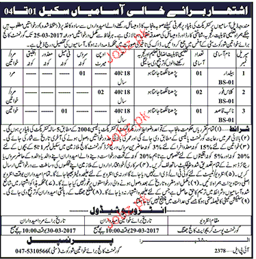 Apply as per details in job advertisement. Login to view further details of how to apply via https://www.jobz.pk online.