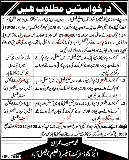 Latest Government Labor Posts Faisalabad 2025