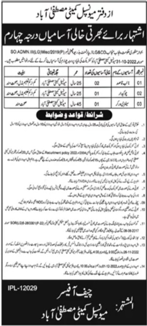 Class IV Jobs 2022 in Municipal Committee Mustafabad
