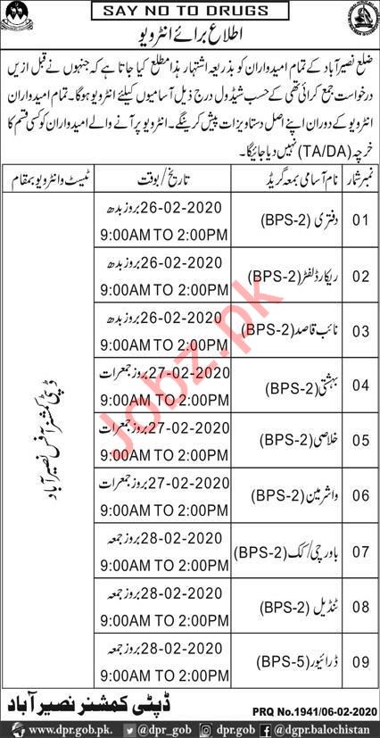 Class IV Jobs Interviews For Deputy Commissioner Naseerabad