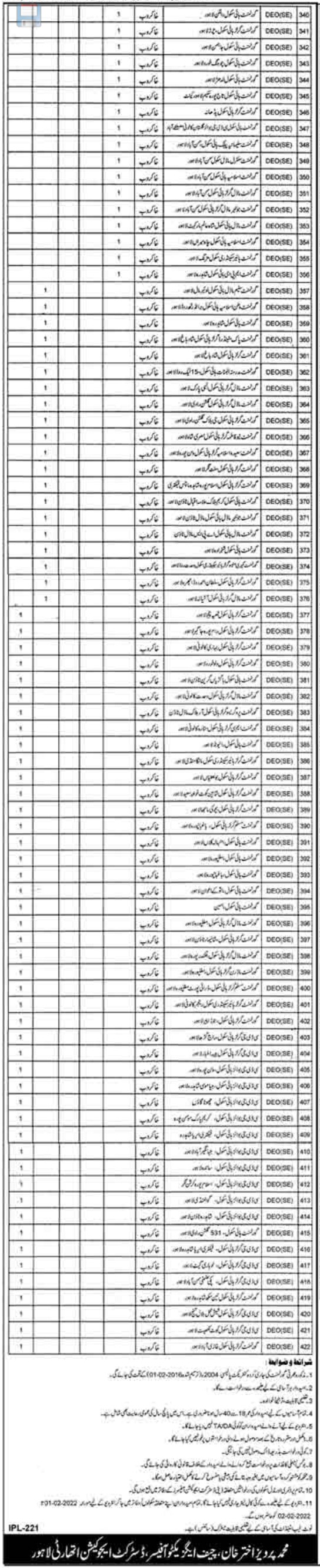 Latest District Education Authority DEA Education Posts Lahore 2025