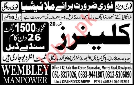 Vacancies in Wembley Manpower Company Advertisement January 2020