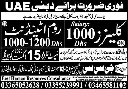 Vacant posts including cleaner and room attendant are announced in GCC Techni Test & Training Center Abu Dhabi, dubai UAE as per 12 August 2023 advertisement in daily Express Newspaper. Candidates with Intermediate and Matric etc. educational background will be preferred.
