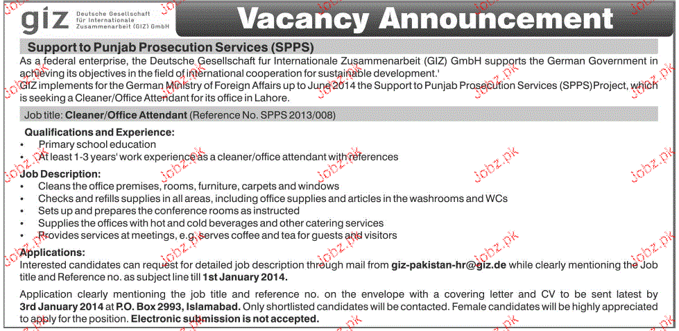 Apply as per details in job advertisement. Login to view further details of how to apply via https://www.jobz.pk online.