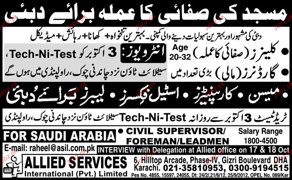 Cleaners, Guarder, Mason, Carpenters Job Opportunity