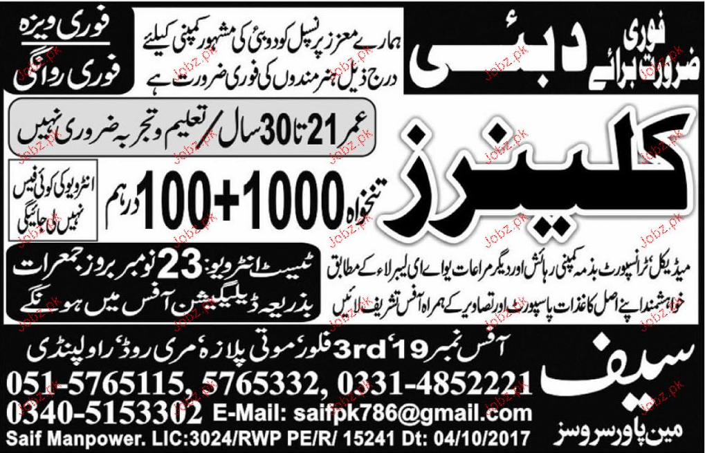 Latest Saif Manpower Services Labor Posts Dubai 2025