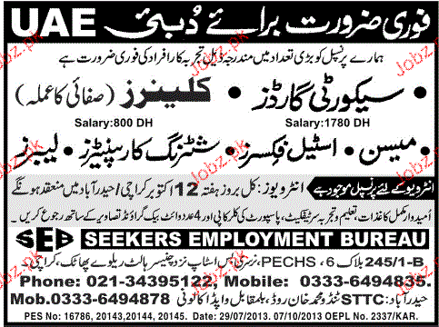 Cleaners, Mason, Labors, Security Guards Jobs Opportunity