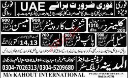Cleaners, Shuttering Carpenters, Mason Job Opportunity