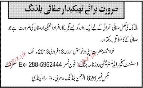 Cleaning Contractors are required in Rawalpindi