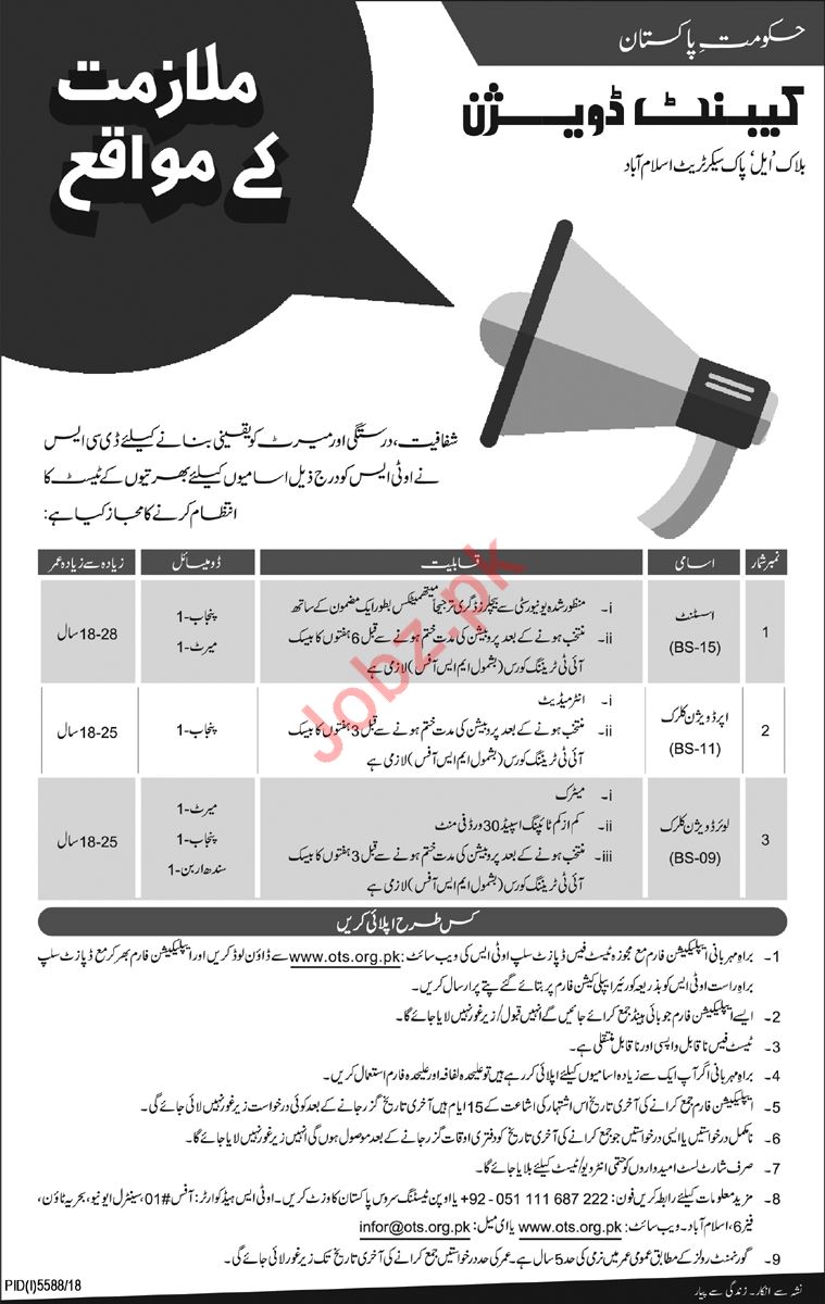 Latest Cabinet Division Admin Clerical Posts Islamabad 2025