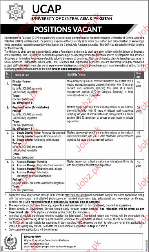 Apply as per details in job advertisement. Login to view further details of how to apply via https://www.jobz.pk online.
