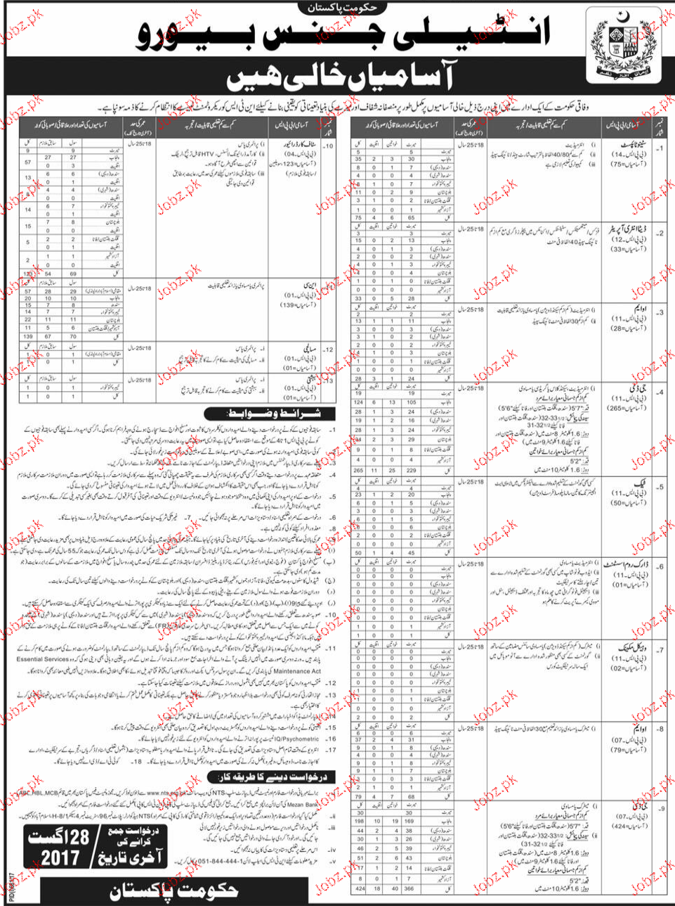 Apply as per details in job advertisement. Login to view further details of how to apply via https://www.jobz.pk online.