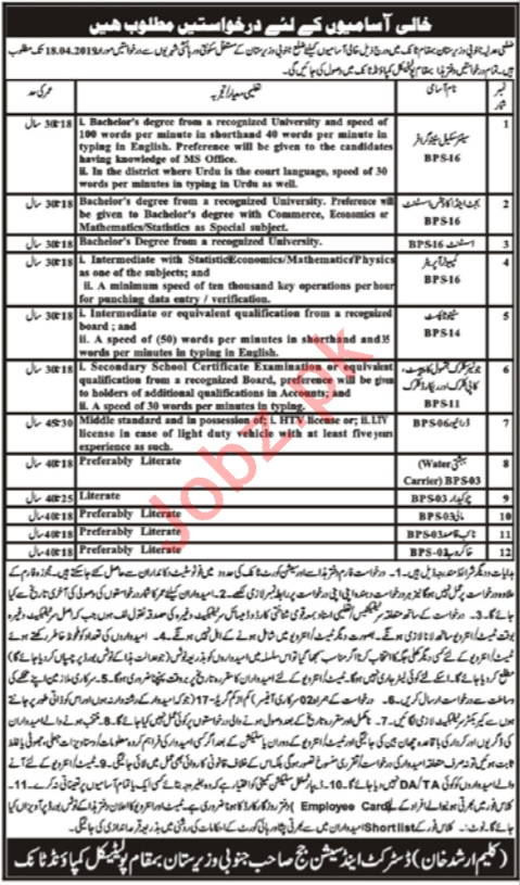 Apply as per details in job advertisement. Login to view further details of how to apply via https://www.jobz.pk online.