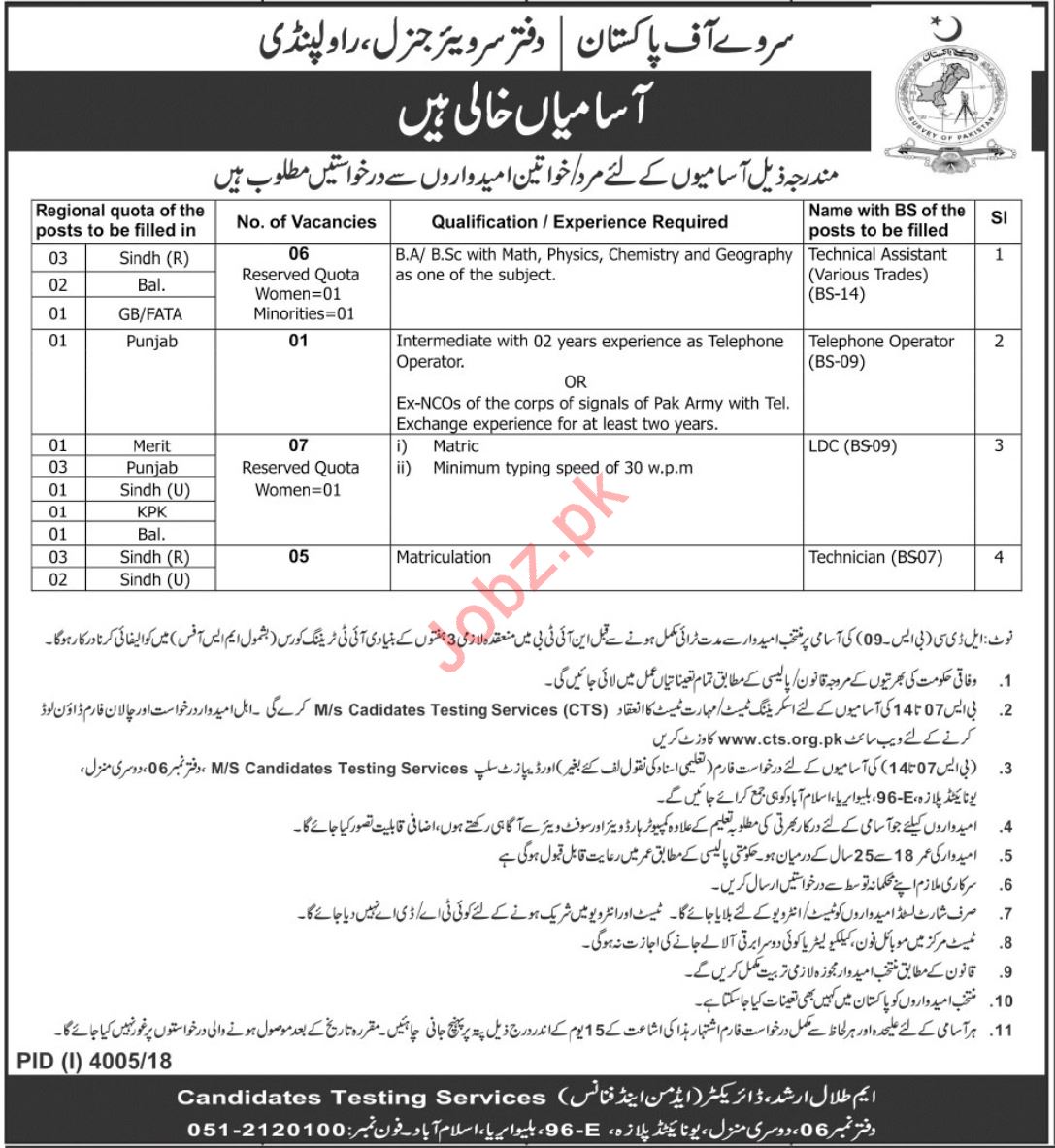 Clerical Staff Jobs in Survey of Pakistan VIA CTS
