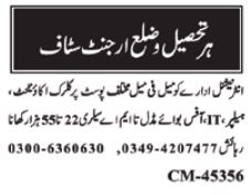 Apply as per details in job advertisement. Login to view further details of how to apply via https://www.jobz.pk online.