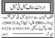 Private invites applications for job positions advertised in daily Khabrain dated 27 October 2023 for following vacancies in Lahore, lahore Punjab Pakistan.