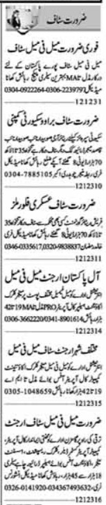 Private jobs advertisement dated about 12 January 2023 in daily Dunya Newspaper invites application for the vacant post of manager, computer call operator, retired government staff, call operator, retired naib subedar, other staff, receptionist, customer delaer, clerk, security supervisor, retired naib qasid, office staff, helper, assistant manager, cook, retired subedar, male female staff, pro, office boy, management staff, driver and accountant in Multan, multan Punjab Pakistan. Preferred Education is Bachelor, Master, Intermediate, Matric and Middle etc.