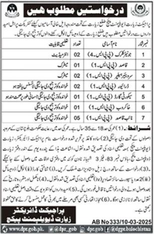 Government Project is looking for candidates for following posts as per job advertisement published in daily Jang Newspaper of October 4, 2025 for location Ziarat, ziarat Balochistan Pakistan: