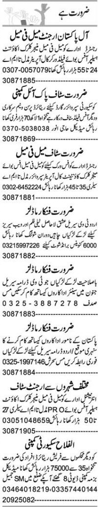 Vacant posts including retired person, supervisor, office boy, clerk, security supervisor, security guard, call operator, field worker, helper, office staff, actor, accountant, retired staff, manager, field staff and model are announced in Private Company Faisalabad, faisalabad Punjab Pakistan as per 14 February 2024 advertisement in daily Express Newspaper. Educational qualifications required Bachelor, Middle, Master, Matric and Intermediate etc.